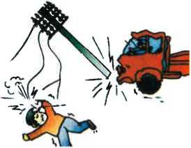 9、 汽车、摩托车撞电杆或拉线,导致线路短路爆炸并可能 造成人身触电伤亡。